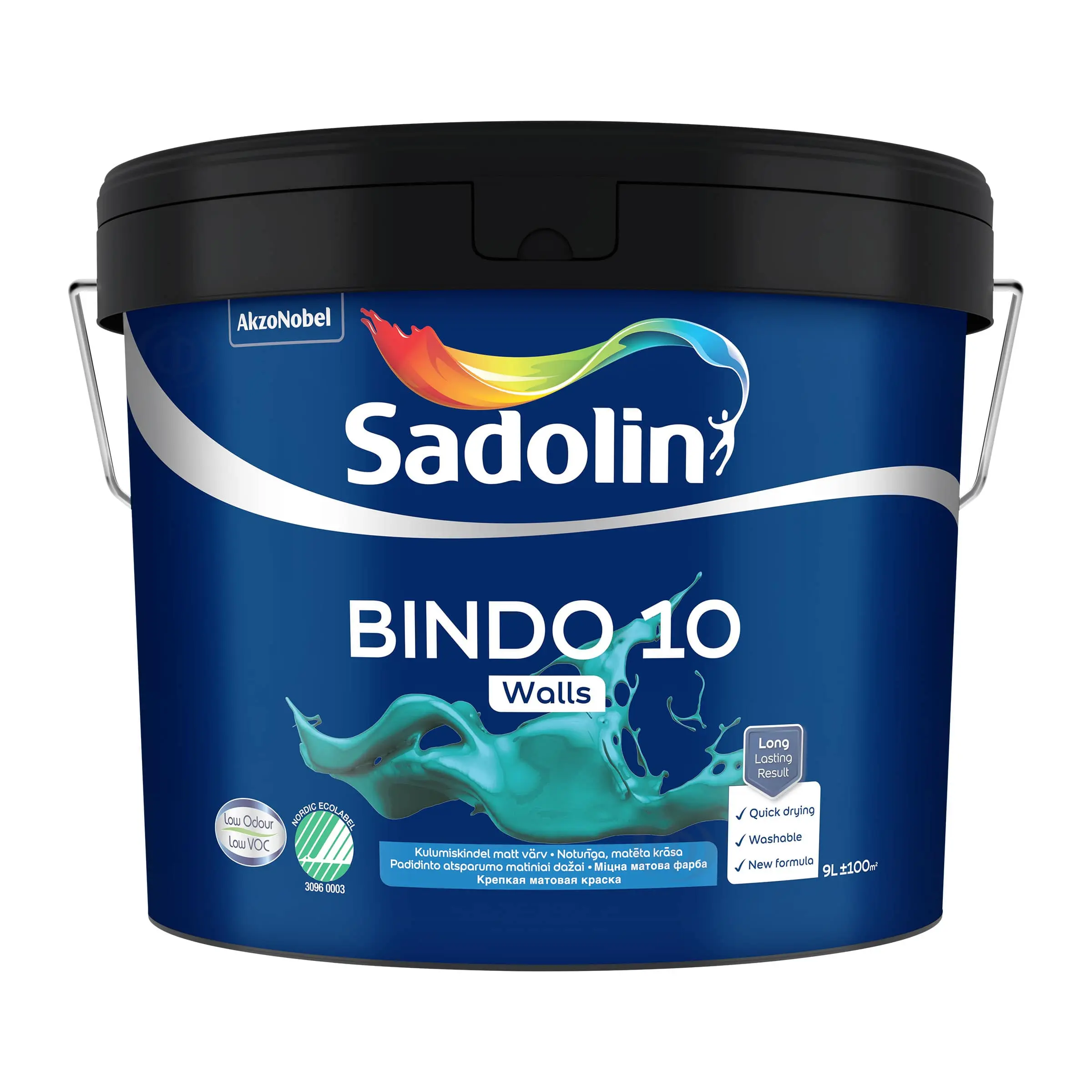 Емульсійна фарба для стін однорідної консистенції, що утворює на стінах міцну матову поверхню. Фарба рівномірно й бездоганно покриває стіни, стійка до щоденного зносу, завдяки чому стіни довше залишаються чистими. Фарба швидко висихає і легко наноситься, що допомагає без зайвих зусиль досягати професійного зовнішнього результату. Пофарбовану поверхню можна мити і за нею легко доглядати. Є можливість вибору із сотень тисяч кольорів. Фарба Bindo 10 має слабкий запах і дуже низький вміст ЛОС (летких органічних сполук). Фарба має знак сертифікації «Північний лебідь», що гарантує відповідність суворим екологічним стандартам.
